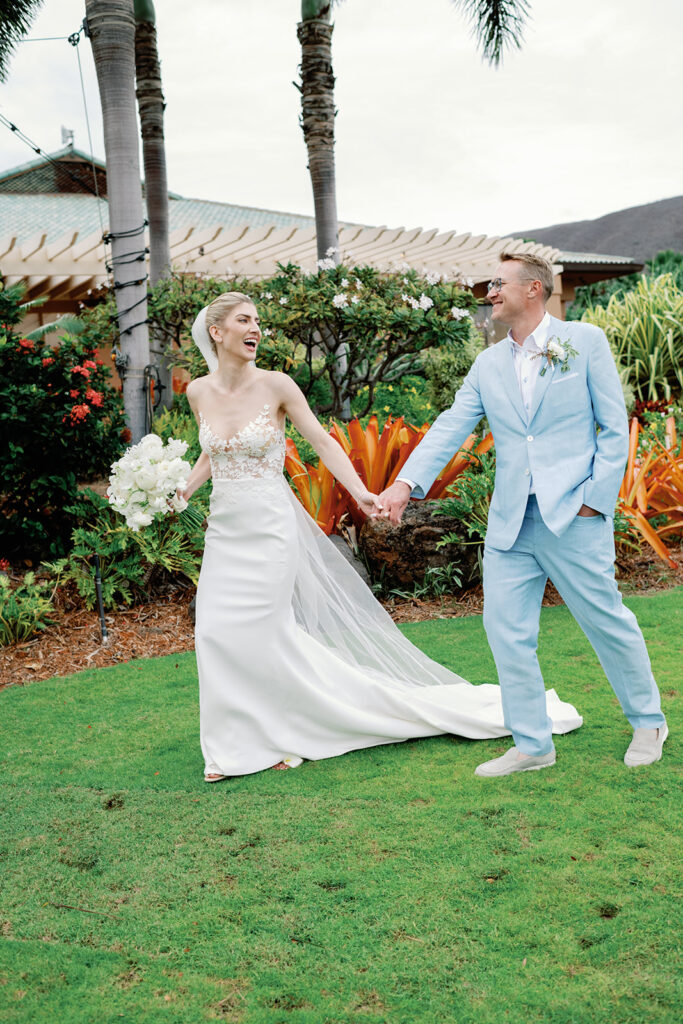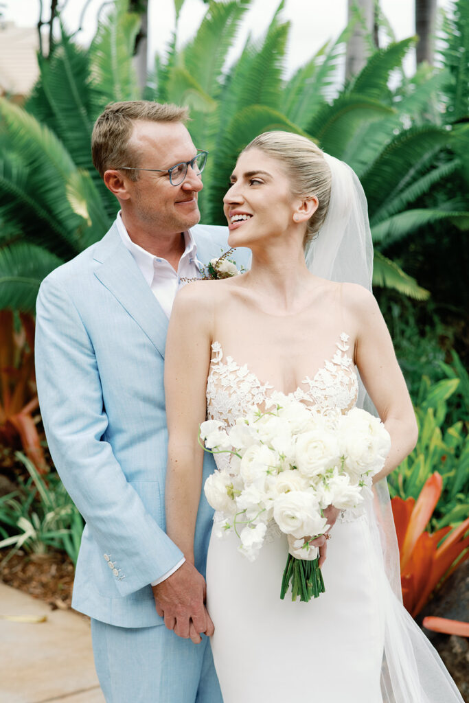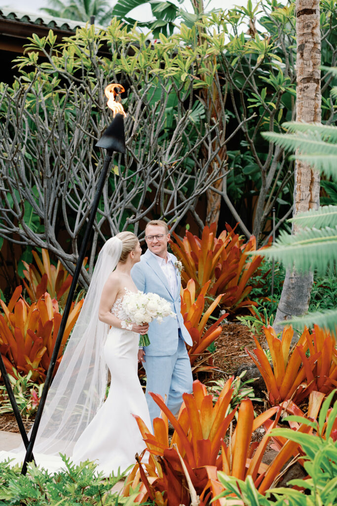 Kelsey and Elliott are from Colorado and connected with Mauna Creative, who is both Colorado and Maui based, before finding their venue and together we decided the Ritz Carlton was the perfect venue for their early January wedding post holidays, what better place to escape the Colorado snow and start the new year! Their vibe was a blend of elegant and tropical and they are vibrant, joyful people and wanted to reflect that in their colors. The florals by Asa florals reflected that with more color than our more traditional weddings and brought a vision to life that was bright and celebratory.